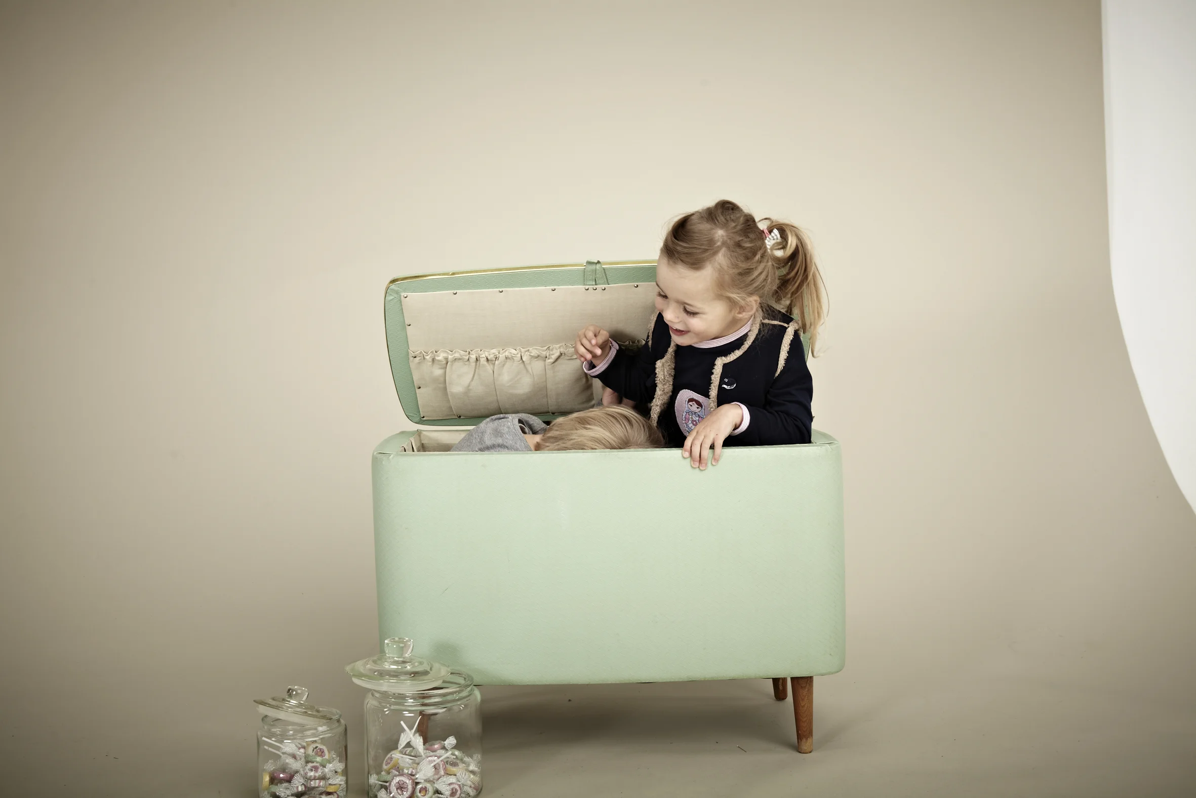 Rock mit Taschen mit Schleife-Brosche. Kann auf jeden Oberteil aufgetragen werden.